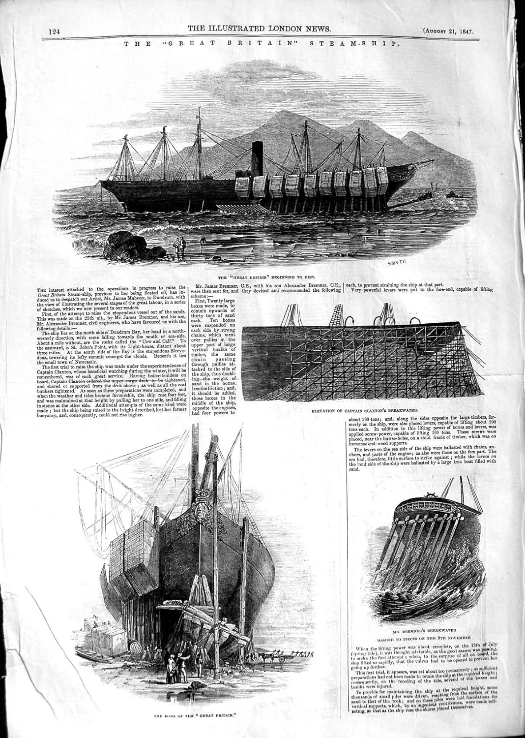 BRISE-LAMES 1847 DU BATEAU CLAXTON DE VAPEUR DE LA GRANDE-BRETAGNE Two Full pages from our volumn of the Illustrated London News dated 1847, an illustrated weekly newspaper weeks date as shown on top of page, the size of each page is approx ( including margins as shown )imately 16 x 11 inches (410x280). All are genuine antique prints and not modern copies, the Illustrated London News is an illustrated magazine which was first printed in 1842 and is the finest pictorial example of a historic social record of British and world events up to the present day. The ILN is known for its coverage of the following subjects the wars, ships, boats, guns, sailing, portraits, fine art, old and antique prints, wood cut, wood engravings, early photographs, Victorian life, Victorian culture, kings, queens, royalty, travels, adventures, natural history, birds, fish, mammals, fishing, hunting, shooting, fox hunting, sports including tennis, cricket, football, horse racing, politics and many more items of interest founded by Herbert Ingram may 14th 1842.
