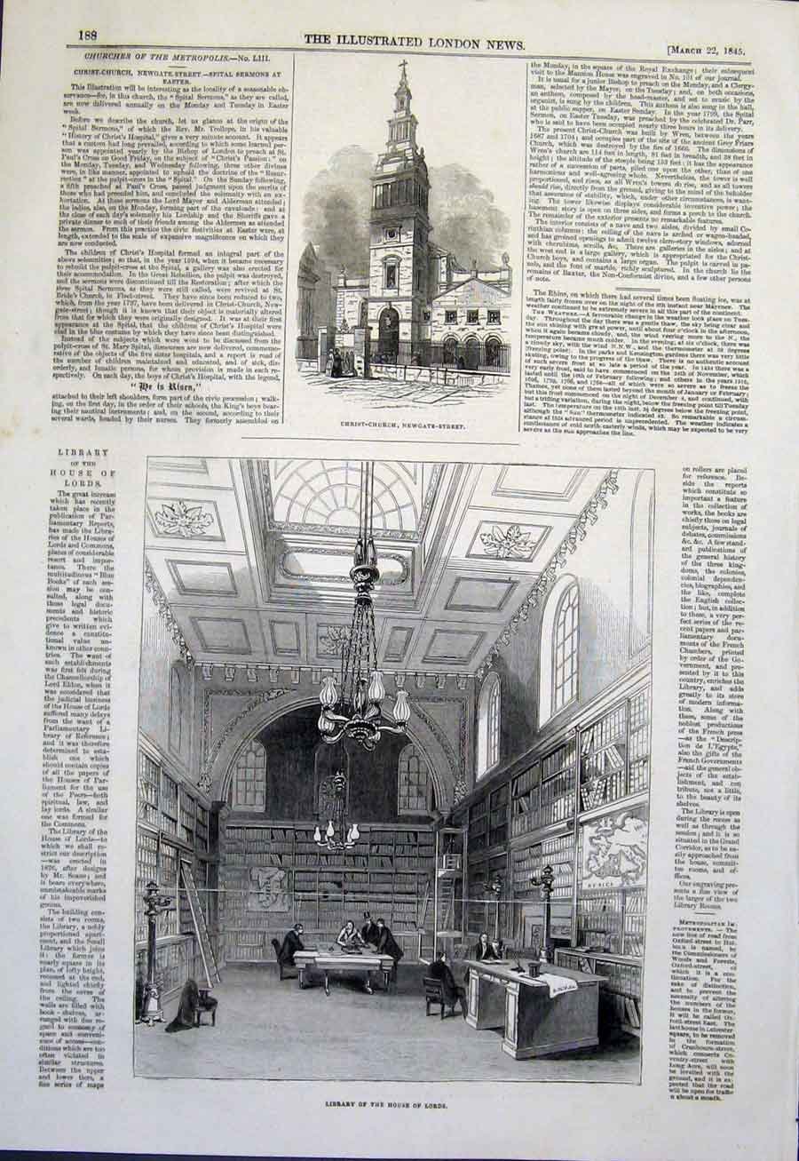 Seigneurs Print de Chambre de Biblioth?que de Rue de Newgate d'?glise du Christ? Old Antique Historical Victorian Prints Maps and Historic Fine Art ----------. Christ Church Newgate Street Library House Lords Print Page From An Issue 1845 . The Illustrated London News . These Wood Engravings From Sketches, Or Early Photographs Would Make An Ideal Gift For Christmas Or Birthday . The Actual Date Is Printed On Each Page . This Engraving Is Over 150 Years Old. And Is Not A Modern Copy. These Images Are Scanned At Low Resolution For Quick Uploading And Are Much Better Than The Scanned Image.. Size Of Print Is Approx ( injcluding margins as shown ) 14" X 9.1/2" If It Is Shown As Whole Page, Or Prorata.. Approx ( injcluding margins as shown ). Page Size = 16" High X 11" Wide. Ready To Matt And Frame. These Old Prints Really Look Great With Matt And Framed. . Note This Print Is From A Periodical And Has Printing On Reverse.